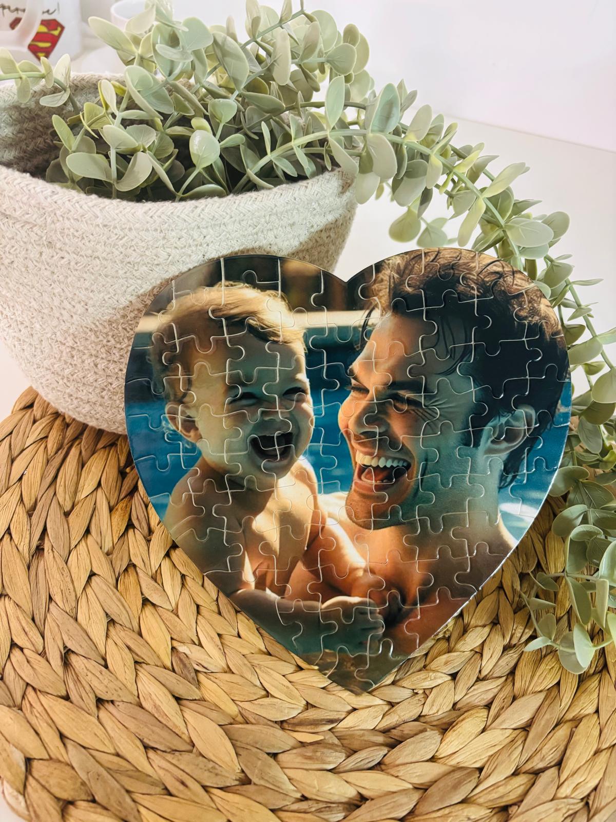 Un regalo emozionante e personalizzato, perfetto per sorprendere il tuo papà con un ricordo unico! Questo puzzle a forma di cuore con foto è un modo dolce per rivivere i momenti più belli insieme.